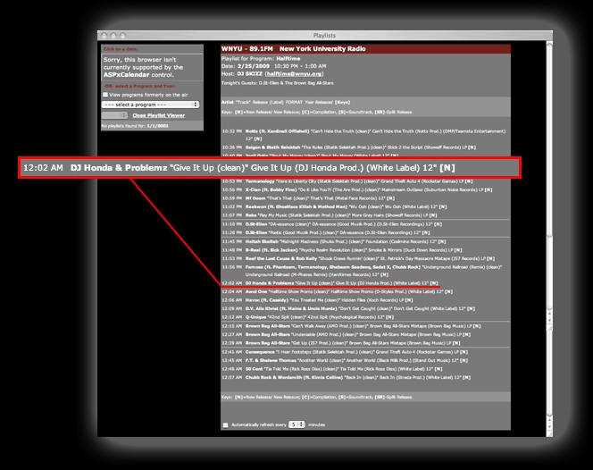 89.1 FM WNYU(NEW YORK) "The Halftime Show" 2009.Feb.25 Play Now!